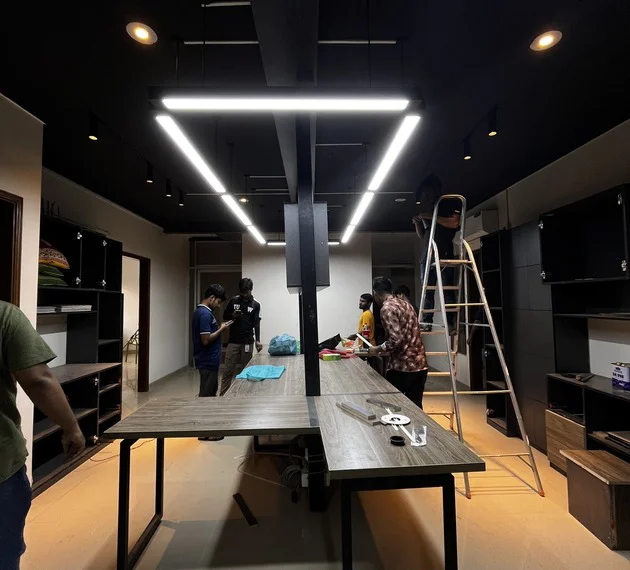 This recently completed office interior in Uttara is designed to support productivity, comfort, and modern work culture. The layout balances open workspaces with private zones, while clean lines, functional furniture, and balanced lighting create a professional environment.